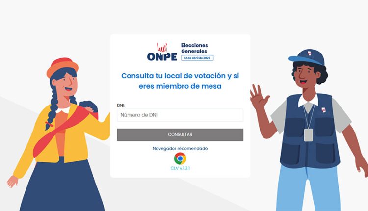 Cajamarca (CENCA) — La Oficina Nacional de Procesos Electorales (ONPE) habilitó la plataforma para que los electores conozcan su local de votación en las elecciones generales del 12 de abril de 2026, ingresando su DNI y puedan saber si fueron elegidos miembros de mesa (tres titulares y seis suplentes).